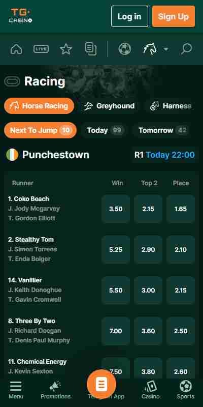 また、eホースレーシングやグレイハウンド(競争犬)、ハーネスレース(繋駕速歩競走)も提供されており、いつでもベットを楽しむことができます。