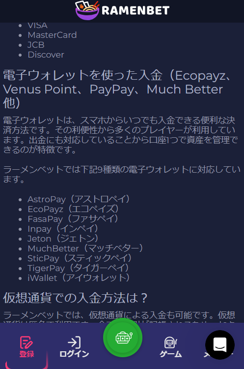 2023年に誕生したラーメンベットは、500円からPayzでの支払いが可能な海外の新しいオンラインカジノです。