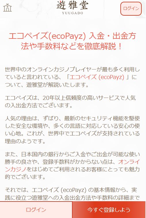 入金と出金の両方に利用できるため、遊雅堂の公式サイトからもおすすめの電子決済として推奨されています。